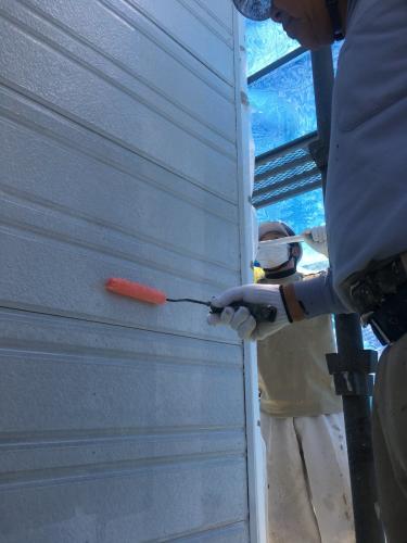 下塗り材を丁寧に塗っています。